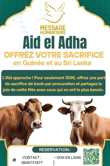 Nous nous chargeons de tout, dans le respect des rites, pour que votre geste de foi ait un impact réel et que la viande soit distribuée auprès des familles et personnes en difficultés au Sri Lanka et en Guinée.